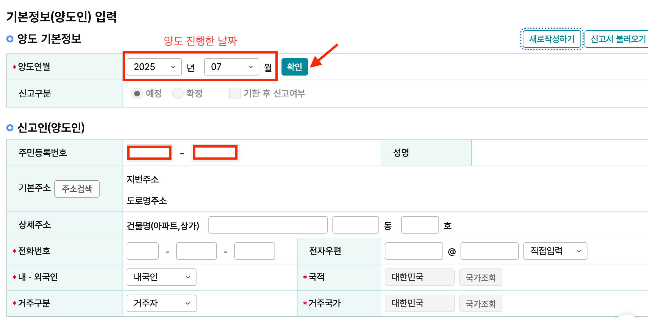 - 예정신고: 양도일이 속하는 달의 말일부터 2개월 이내 신고